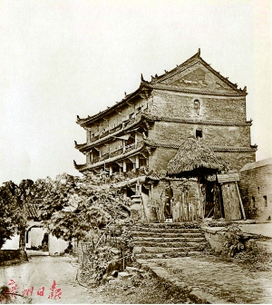 目前唯一能见到的一张保存最早的镇海楼照片。照片记载了1860年4月侵略者英法联军士兵在镇海楼站岗画面。(翻拍)