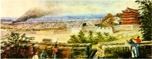 第一次战争英军随军记者绘画,可见镇海楼北面的广州城外浓烟滚滚。(翻拍)