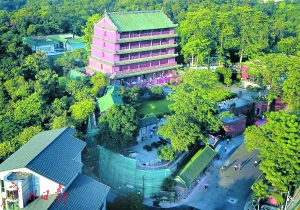 镇海楼坐落于海拔70米的越秀山上,楼高28米,曾一度是广州城的制高点,目前,镇海楼古城墙正在维护施工。广州日报全媒体记者廖雪明 摄